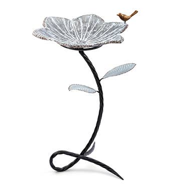 Introduce tranquility and beauty to any garden with this cast aluminum bird bath. Crafted for enduring elegance, the weather-resistant and UV-resistant finish features a captivating copper patina that deepens over time. Unlike bird baths made from materials prone to cracking or fading, this cast aluminum design weathers the elements with ease, ensuring it remains a stunning focal point for years to come. The rich copper patina evokes a sense of warmth and artistry, reminiscent of traditional garden sculptures. Adding to the charm is the bowl's unique design. Shaped like a delicate lotus flower, it offers a beautiful and natural aesthetic that complements the surrounding greenery. Supported by a traditional pedestal base, this metal freestanding bird bath combines timeless design with functionality. The shallow basin, reminiscent of the lotus flower's cup, provides the preferred depth for birds to bathe and preen comfortably. The sturdy cast aluminum construction ensures a stable platform, offering a reliable resting spot for feathered visitors. • Cast aluminum bird bath with lotus-shaped bowl • Copper patina finish deepens with age • Weather- and UV-resistant for outdoor use • Small bird bath fits tight garden spaces • Decorative bird bath with pedestal base • Shallow basin ideal for safe bird bathing • Holds 0.75 cups of water for hydration • Metal freestanding bird bath is stable • Timeless style suits any patio or garden WARNING: This product can expose you to chemicals including Lead, which is known to the state of California to cause cancer and birth defects or other reproductive harm. For more information go to www.P65Warnings.ca.gov.
