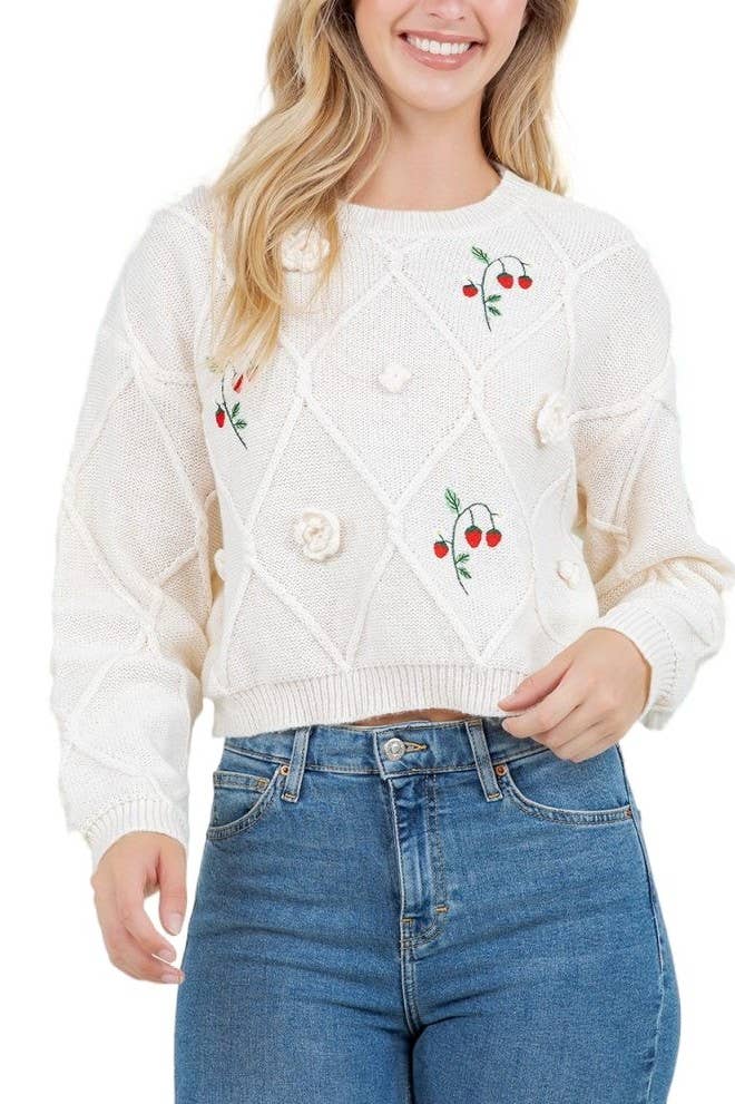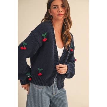 Cherry Crochet Pom Pom Cropped Cardigan Sweater MK3515