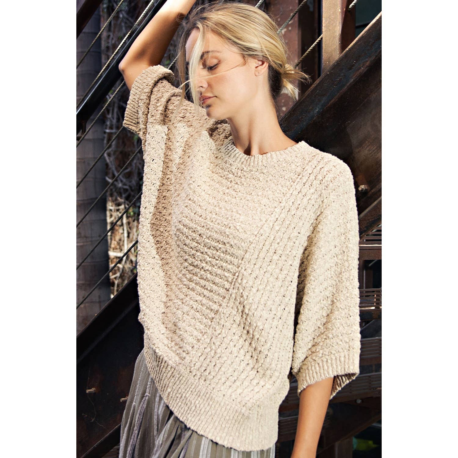 * Style No.: CSW0010 Perfect for outfits for women, our oversized sweaters offer a stylish and comfortable fit ideal for any occasion. Designed with a crew neck, half sleeves, and ribbed cuffs, this sweater combines casual elegance with a trendy oversized style, suitable for women and girls alike. Cotierra, cotierra, cotton, tierra, eco friendly, natural, nature fabric, contemporary, basic, daily, vintage, modern, boho, bohemian, mioumuse, spring, summer, spring 2026 clothing, stripe, feminine, western, boho clothing women, womens clothing, western apparel, sweater, pink sweater
