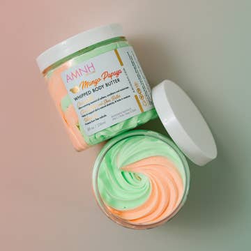 Love Body Butter is self love in a jar. It's a Venusian blend of freshly bloomed roses and sweet juicy pink lady apples that invites you to love yourself. This alluring pink butter is topped with soothing rose quartz infusing your skin with the vibration of love. Packaged in a 2 oz travel size or 4 oz reusable glass jar. Melt Warning - This product melts in hot environments. If your product melts in transit we are not responsible and will not issue a refund or store credit. Immediately put jar in refrigerator to solidify, texture may change slightly. Ingredients: Vitellaria Paradoxa (Shea) Butter, Organic Cocos Nucifera (Coconut) Oil, Helianthus Annuus (Sunflower) Seed Oil, Zea Mays (Corn) Starch, Fragrance (Phthalate Free), Mica, Titanium Dioxide, Iron Oxide, Tin Oxide, Cetearyl Olivate (and) Sorbitan Olivate