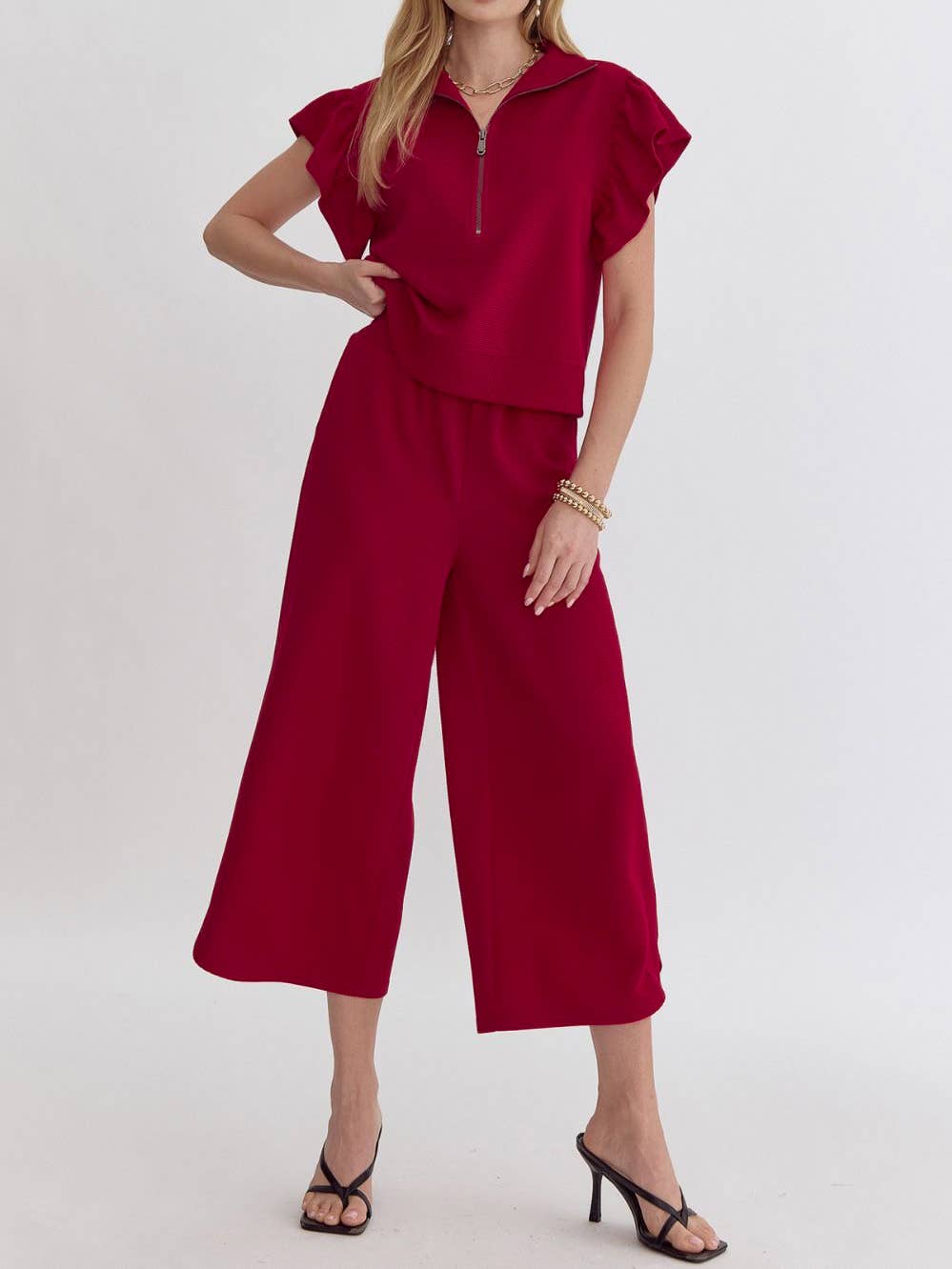 SKU: TRVSET-COASTAL, TRVSET-COASTAL, TRVSET-COASTAL Made in Vietnam Aesthetic: Casual Fit: Contemporary Neckline: Round neck Occasion Theme: Everyday Occasion: Everyday and Resort / Vacation Pant Style: Wide Leg Pattern: Solid Rise Style: High Season: Spring/Summer Sleeve Length: Short Sleeve Fabric: 96% Polyester 4% Spandex