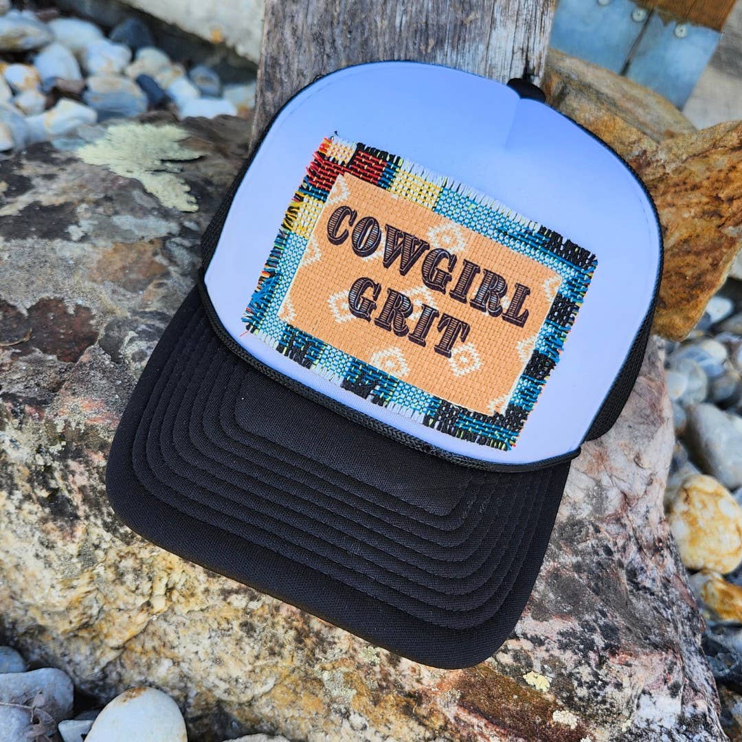 Cowgirl Grit Trucker Hat with CowHide Brim Bring bold style to your boutique, online shop, or TikTok store with the Cowgirl Grit Trucker Hat — a standout accessory that sells itself. Handcrafted from upcycled Native American Print Afghan fabric, each hat is one-of-a-kind, offering a vibrant, authentic look that your customers will love. Perfect for rodeos, festivals, and everyday cowgirl style, this hat combines fashion with function. Hat Construction Details: Foam front for structure and style Breathable mesh back for comfort and airflow Adjustable snapback closure to Every hat features a unique cowhide pattern, making each piece completely original. Each Hat is unique due to the nature of the upcycled fabric. Ideal for TikTok creators, online sellers, and boutiques looking for highly Instagrammable, trend-worthy western accessories. Stock them for your customers who love western flair with a sustainable twist — hats that sell fast because they stand out!