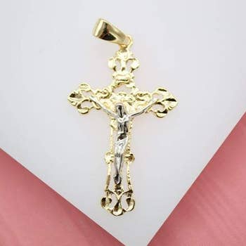 14K Gold Color : Two-Toned  Height X Length :35mm X 20mm  Weight: 1.1g 14K Two-Toned Gold Silver and Yellow INRI Crucifix Cross Religious Pendant Hypoallergenic- Lead & Nickel Free This 14K Gold Pendant is designed to fit comfortably and lay easily on your Chest, making this a product of satisfaction It will not irritate your skin since this is genuine 14K Gold
