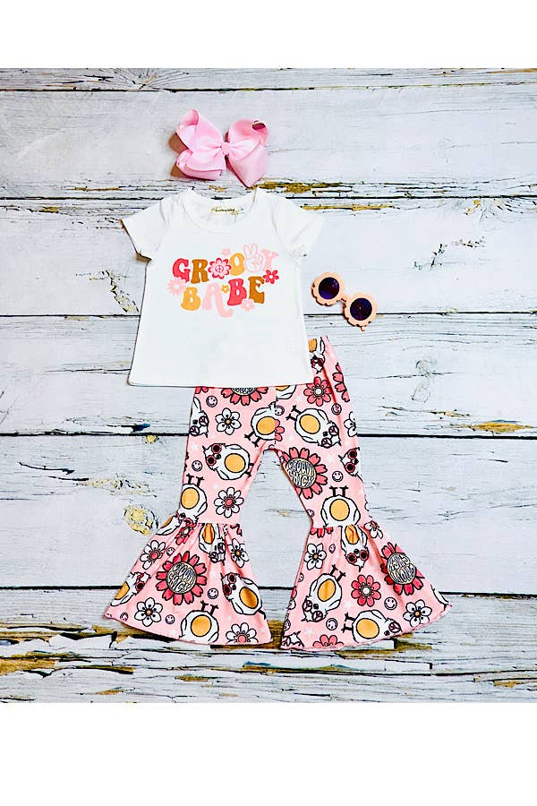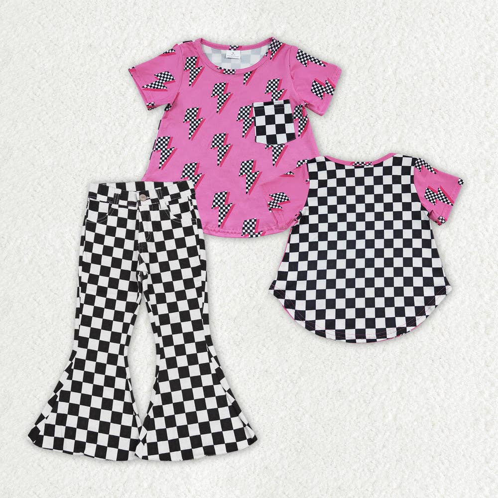 Kid life smile plaid bell bottom pants girls clothing set