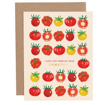 Send your love this vege-punny card to brighten up their day. Say "I love you" on Valentine's Day or any other special day of the year. It was personally designed and packaged by me. • A2 or A7 size card with envelope in clear protective sleeve • Professionally printed on heavy cardstock • Blank inside for your special message I print my cards with a company that is 100% powered by wind and uses responsibly forested papers. They plant 1 tree for every order I purchase. The French Paper Speckletone envelope is made from recycled paper. The clear protective sleeve is made with compostable PLA (Poly Lactic Acid obtained from plants). ©Shannon Segelsky Creative LLC