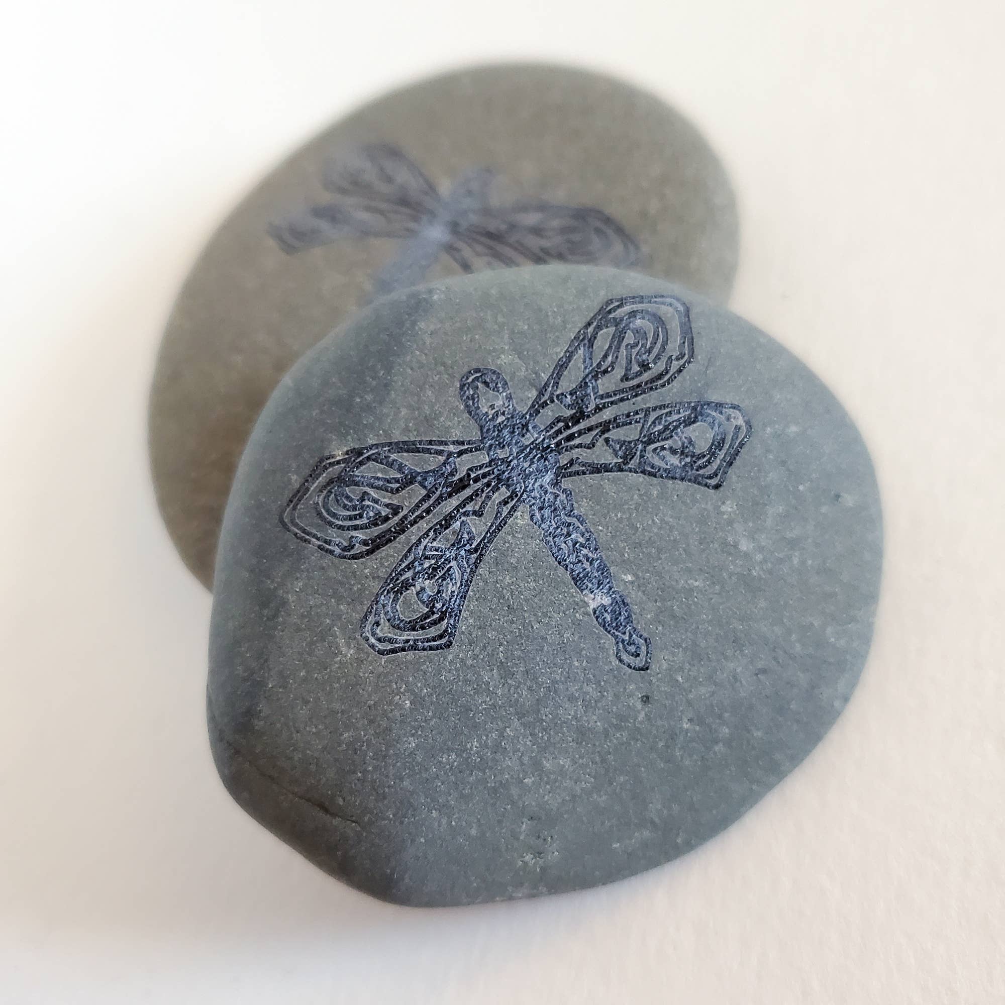 This river stone is engraved with our original Celtic horse heart. Because we are using natural river stones shape and color may vary slightly from what is pictured. Because we create these stones with laser engraving, depending on the kind of stone engraved, the engraving can appear lighter or darker than the stone itself and the engraved part can sometimes have a glassy texture. Approximate Dimensions: 1.5 - 2 inches