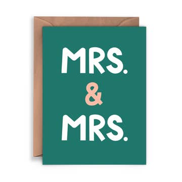 Celebrate love in all its forms with this elegant and heartfelt greeting card. Perfect for congratulating the happy couple, this design features timeless typography in a soft blue and coral palette, complemented by a clean and modern layout. Retailers, this card is a must-have for wedding season, offering customers a chic and inclusive way to wish the newlyweds their happily ever after. Printed on 100% recycled paper and paired with an eco-friendly teal envelope, itâs a beautiful addition to any card wall. Card reads: âwishing you both Mr. & Mr. a happily ever afterâ DETAILS: âą A2 size (4.25 x 5.5â) âą Blank inside for personal notes âą Printed on 100% recycled paper âą Includes an eco-friendly teal envelope âą Designed + printed in the USA CATEGORIES: Greeting Cards, Wedding, LGBTQ+, Love + Romance, Sustainable Paper Goods