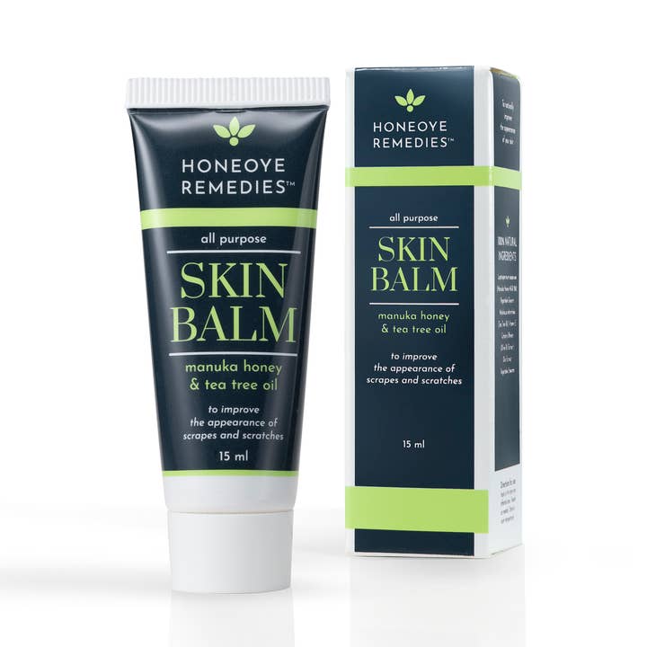 This all-natural skin balm is a must-have for anyone who wants to improve the appearance of dry skin, scrapes, scratches and more! Developed by a board-certified physician and leading scientific researcher, our skin balm is comprised of authenticated Manuka Honey (550+ MGO) sourced directly from Bee’s and Tree’s farms in New Zealand, Tea tree oil, and a proprietary vitamin blend, which have been hand-picked and laboratory tested for their many beneficial properties and help perfectly blended to enhance the already present beneficial properties on Manuka Honey. The Manuka Honey used in our skin balm has been certified by the UMF Assoc. Suggested Uses: -Scratches/Scrapes/Cuts -Dry/Cracked Skin -Skin Burn -Blisters -Eczema -Acne -Irritated Skin -Bug Bites -And more! No artificial antibiotics, dyes, fragrance parabens, sulfates, phthalates; silicon derived ingredients; synthetic filler; mineral oils; petrochemicals; phenoxyethanol; BHA; ethanolamine's and our products are cruelty-free.
