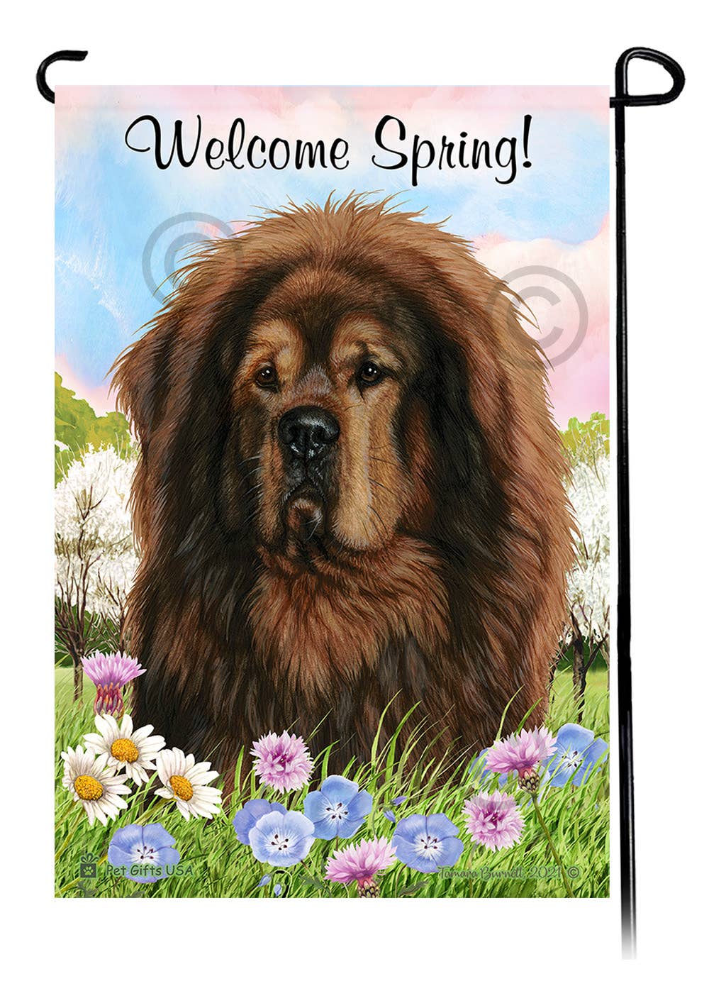 Garden size Double Applique flag is 13 x 18 inches. The design is a combination of fabric appliques and exquisitely detailed embroidery. Design is on both front and back of this 300 denier polyester double thickness flag. These flags are heavier than most others on the market and will hold up longer. Double applique flag fabrics are either satin-smooth or a burlap texture; sometimes a combination of both. Flag will retain its color and beauty for years if displayed in shade or semi-shade, and is rainproof. Flagpole not included.