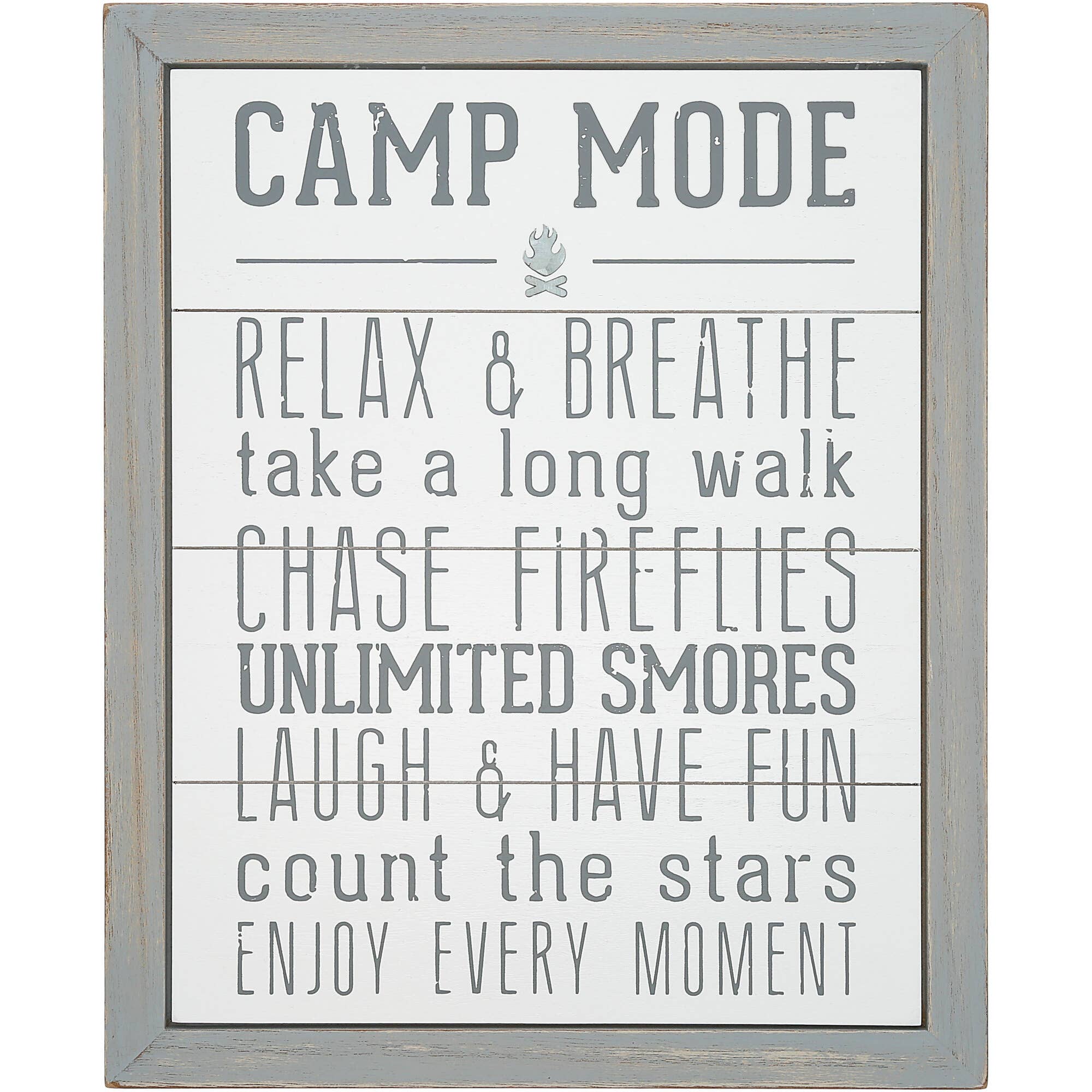 Transform your space with our word sign, featuring a charming chalk-like drawing of a simple camping tent surrounded by pine tree stick figures in a serene forest. Above, a crescent moon graces the scene with twinkling stars scattered around. The heartfelt phrase "Let's sleep under the stars". Hang this delightful piece in your bedroom to create a soothing retreat. • Printed with vivid colored inks on cotton canvas mounted on wood • Solid hardwood frame in shown stain colors • Sustainable American sourced wood • Made in the USA in our Utah studio • MINI 6" tall x 6" wide x 1.25" deep w/ 1/4" thick frame • SMALL 11" tall x 11" wide x 1.25" deep w/ 1/4" thick frame • MEDIUM 15" tall x 15" tall x 1.5" deep w/ 3/4" thick frame • LARGE 22" tall x 22" tall x 1.5" deep w/ 3/4" thick frame • Signs may have +/-1" variations • All signs can stand on a shelf or table (Medium & Large can also hang on a wall) • Farmhouse style frames have small rustic imperfections that make them unique