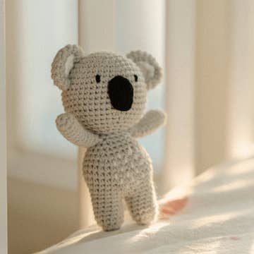 Meet the Bitsies! Adorable, miniature crochet animals that match the book, "Baby Zoo, I Love You." The perfect first toy for babies, featuring a rattle and stitched detailing. Toddlers will love them for imaginative play and their take-along size, making Bitsies the perfect gift for all ages. 🐨 Species Label Name: Harrison Species: Holla Koala (Vociferatio marsupialis) When hunger strikes, you’re guaranteed to hear the hollering of the Holla Koala. With impressively loud vocals and an extra large snack sniffer, they are equally demanding and adorable. ➡️ Fabric + Features - Hand crocheted with 100% cotton - Safe + non-toxic: Meets or exceeds government safety regulations including ASTM and CPSIA safety standards - Harrison is approximately 5” tall - Little size for little hands - Suitable for any age Every Bitsy is handmade and will slightly vary, making them truly one-of-a-kind! Collect the whole Bitsy Zoo!