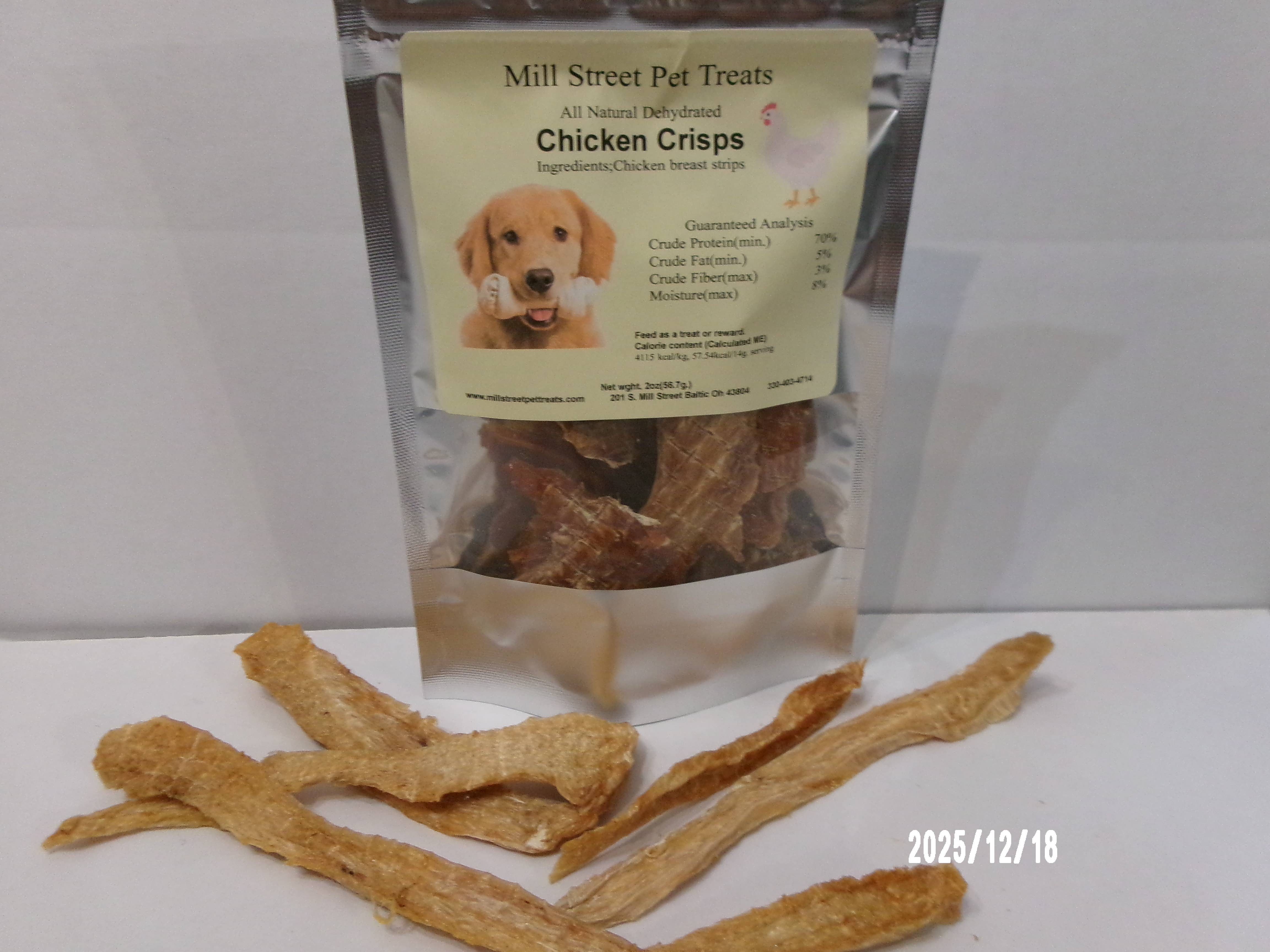 Ingredient: Chicken breast. Created using a gentle freeze dry process that keeps the integrity of the product in tact to preserve its natural characteristics. 100% USA sourced and made. Promotes overall health and wellness. Super lean and high in protein. Contains vitamins, minerals and amino acids. Made from raw, diced chicken breast, with nothing added, and nothing taken giving it strong flavor. 4oz of freeze-dried meat is equivalent to 1lb of non-freeze-dried meat. Guaranteed anlysis: Crude protein: 87.31% (min) Crude fat: 7.18% (min) Crude fiber: 0.73% (max) Moisture: 3.07% (max) Storage/handling: Our bag comes with a convenient resealable zip lock for you to maintain treat freshness. Best to feed within 45 days after package is opened. Do not refrigerate. Store in a dry, cool place out of direct sunlight This package contains a non-toxic oxygen absorber packet. Keep in sealed bag for freshness.
