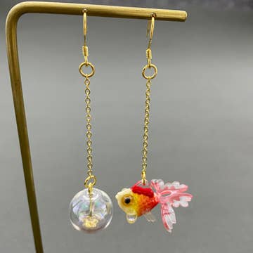 Asymmetric Red Goldfish Dagnle Earrings