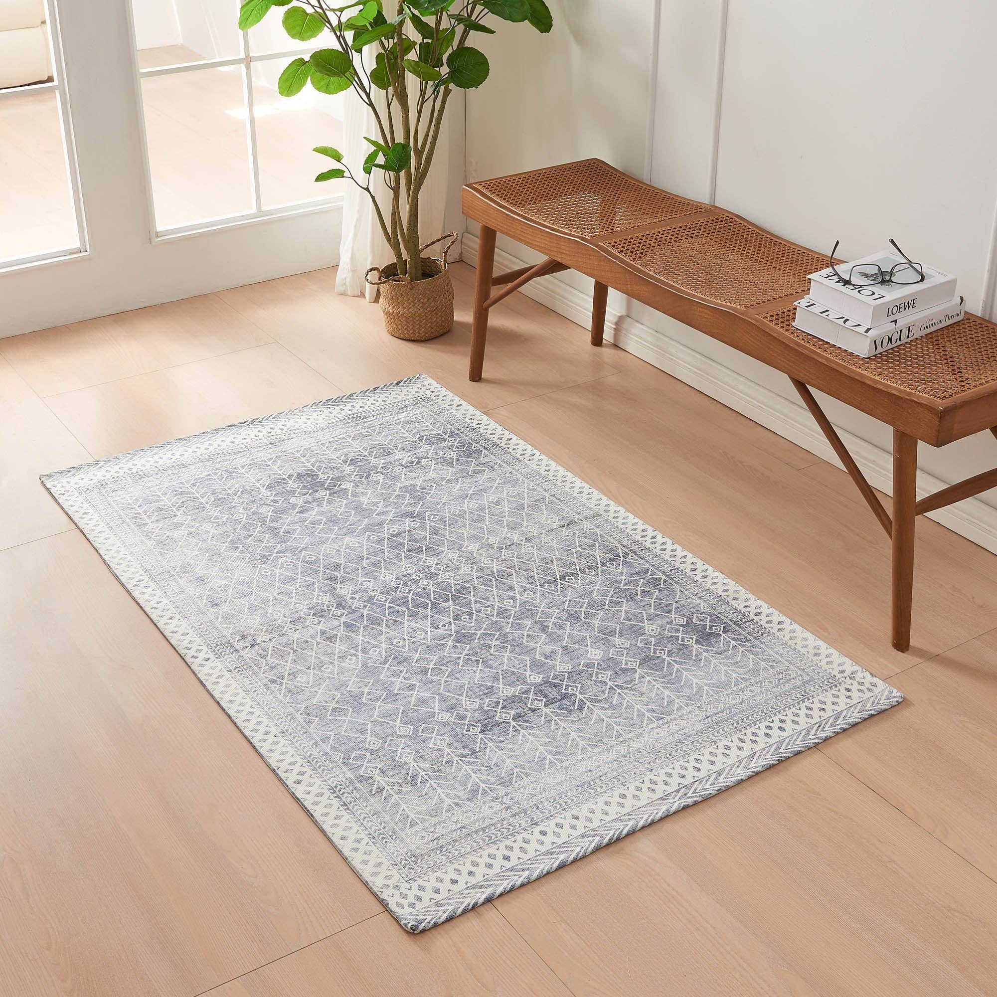 Geometric Bohemian Low Pile Rug - 5' x 7' - Ivory/Black Spring Décor, Fall Décor.