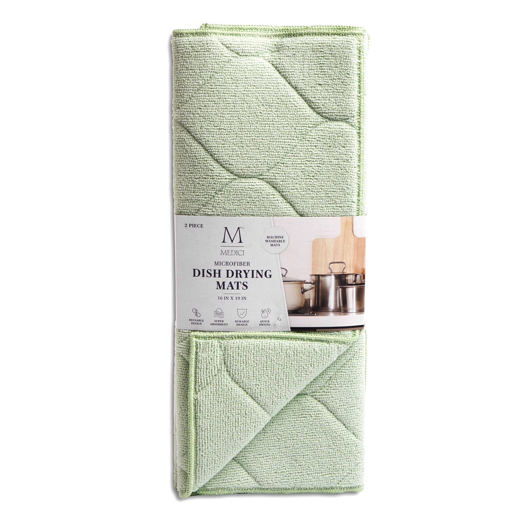 Décor and function are on double duty with this set of 2 coordinating microfiber dish drying mats featuring a variety of tossed fruits and vegetables and a multicolor windowpane plaid. These versatile microfiber dish drying mats come in a set of 2 coordinating designs. The patterns will brighten up the kitchen while doing the clean up, washing and drying. Also great for countertop protection for unheated dishes, utensils and glass. Product Details * Ultra Absorbent & Quick Drying 3x more absorbent than cotton and dries 5x faster * Eco-friendly Made with rPET, reusable & long lasting * High performance waffle weave * Cushions delicate dishes and glassware * Folds & stores easily * Set of 2 dish drying mats - 16” x 20” * Machine washable Art by Kenzie Kae Elston