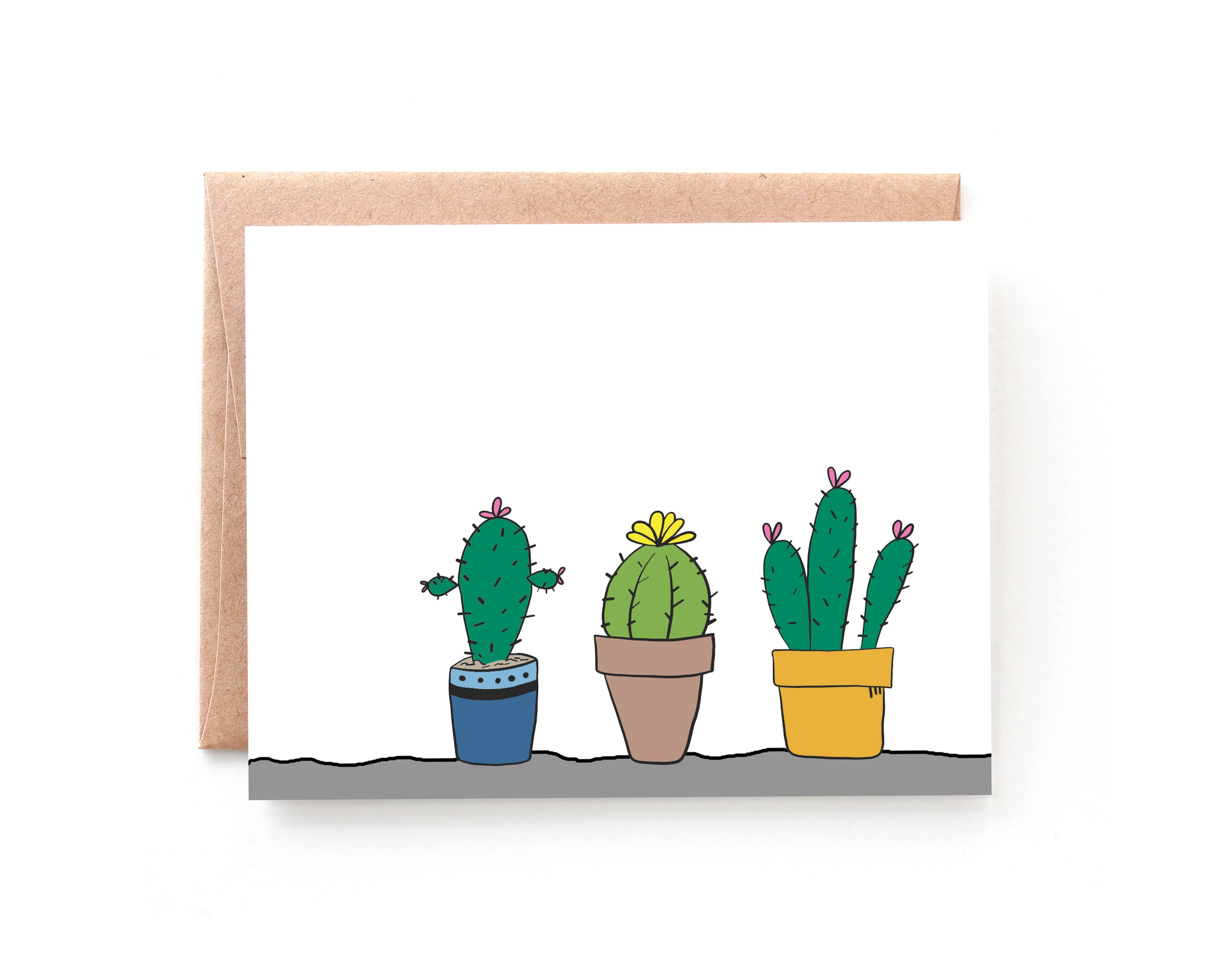 The perfect stationery set for any botanical boss. Card set features a beautiful illustration of a planter box full of green-hued succulents. - Blank inside. - Paired with a paper bag envelope. - Size: A2 - 4.25" x 5.5" - Set of 10 Cards