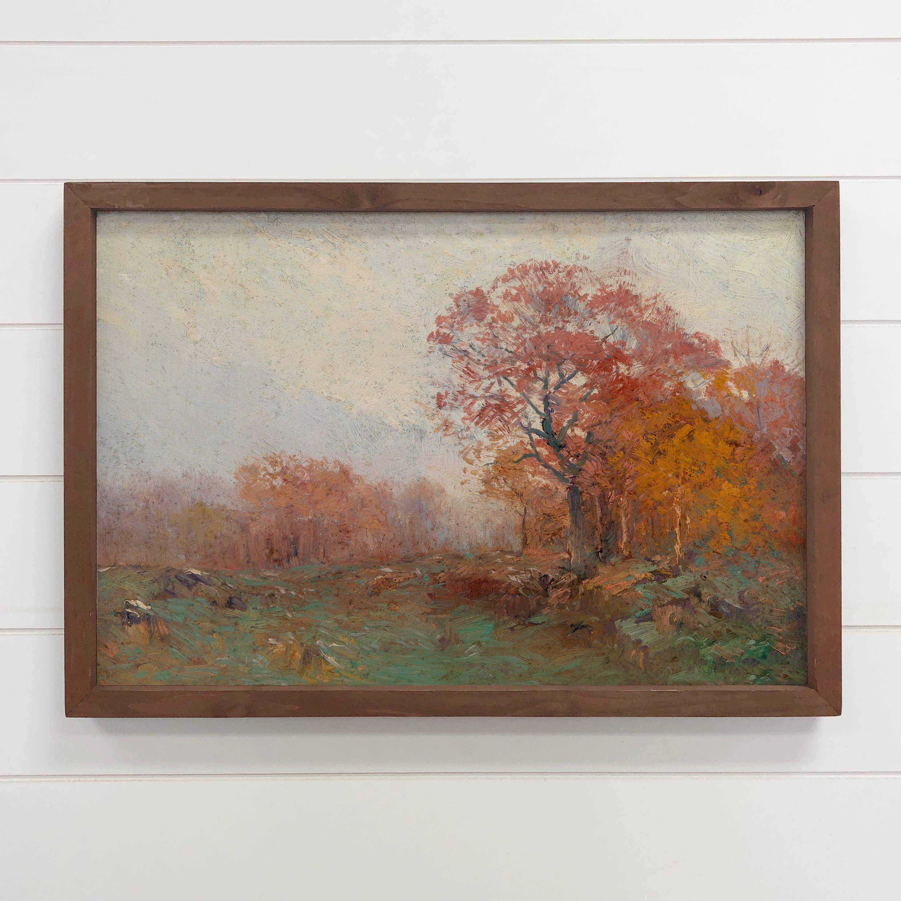 Warm up fall vignettes with this painterly autumn landscape print, framed in a classic gold-tone pine frame. Featuring golden fields and richly hued trees against a soft sky, it brings cozy seasonal color to entryways, mantels, and gallery walls. Ideal for Thanksgiving decor, fall-themed rooms, or boutique art walls. Mdf, Pine, Paper 16" H x 22" W. Pkg Desc: PC