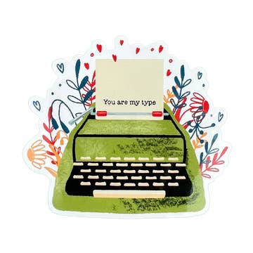 Vintage Typewriter Matte Vinyl Sticker Decorate your lap top, water bottle, notebook and more! Stickers are: - Matte - Vinyl - Dye cut - Scratch proof and weather proof - Approximately 2.5 x 2.5 in size