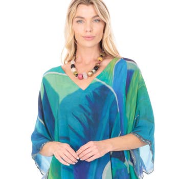 Artisan Bright Abstract Modal Kaftan 100% Modal Dry Clean Only One Size Length 37" Chest 32" Waist 40" Hip 40"