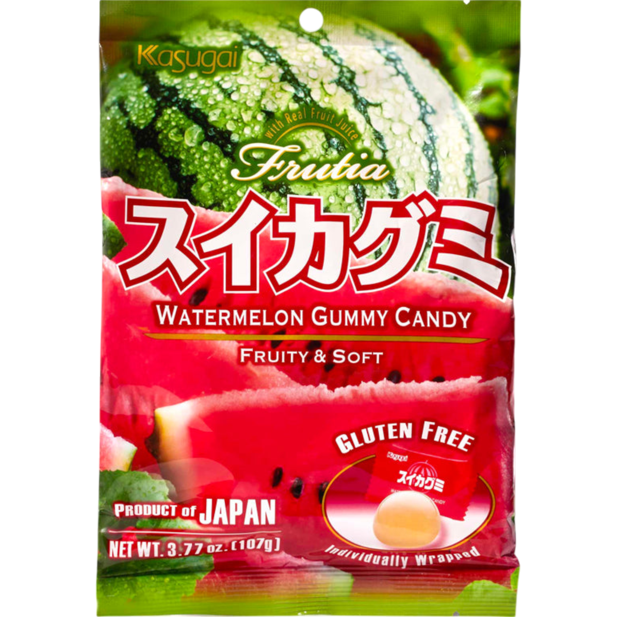 Kasugai Kiwi Gummy Candy. Delicious individually wrapped kiwi gummies. Made with real kiwi juice. Gluten Free -Product of Japan -Each bag is 3.77 oz