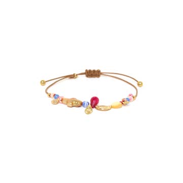 Playful and bold, this pink multi-color paracord bracelet highlights the iconic Sparrow tile charm. A fresh fusion of fun, fashion, and Mahjong flair. DETAILS Base Metal with Shiny Gold Plating 2.5"