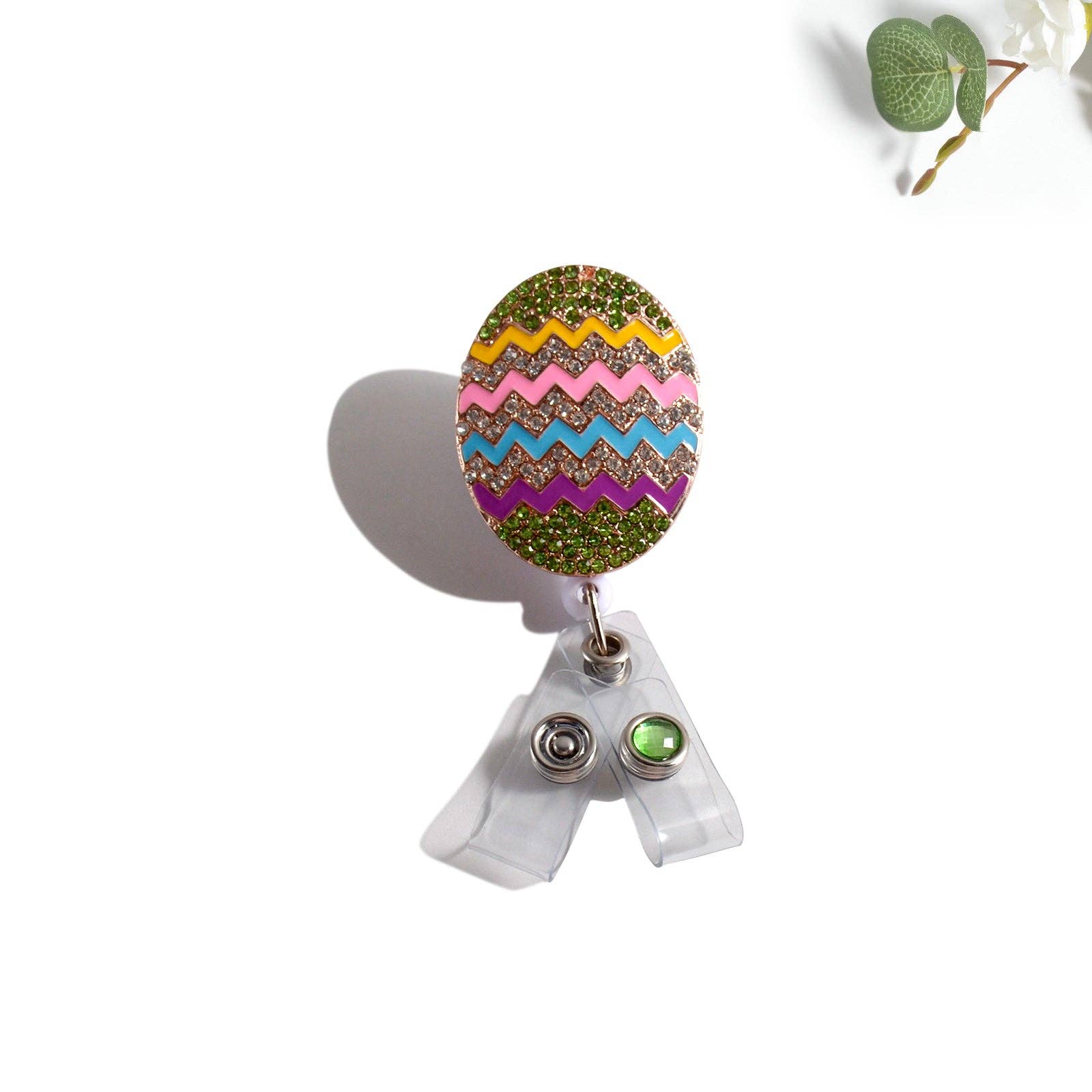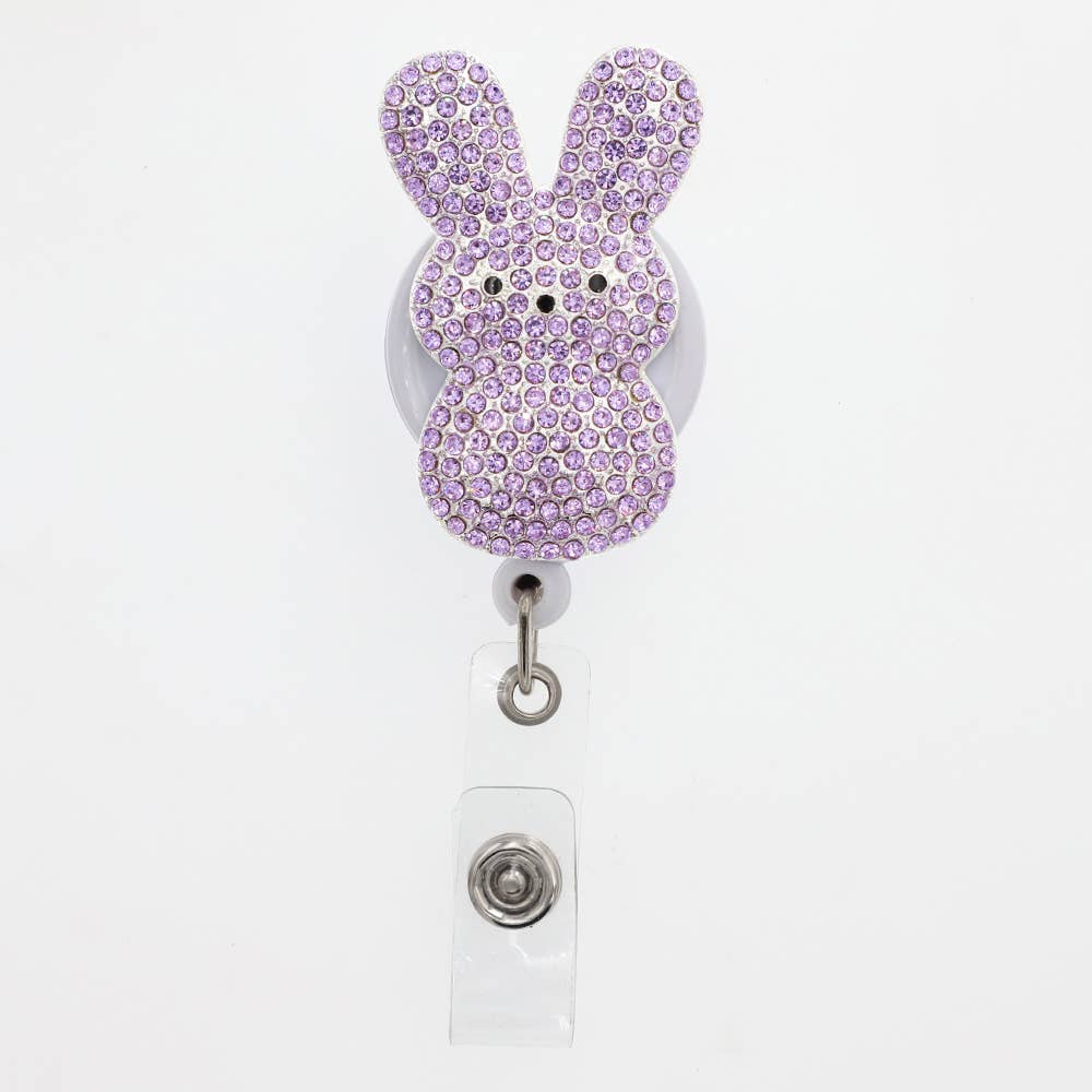 Adorable non-interchangeable Colorful Bunny Peep Sparkle and Shine Badge Reel and Hand-painted Enamel design mounted on our Heavy-Duty rotating alligator clip badge reel. Designed in the USA. Made in China. RBRPEEP