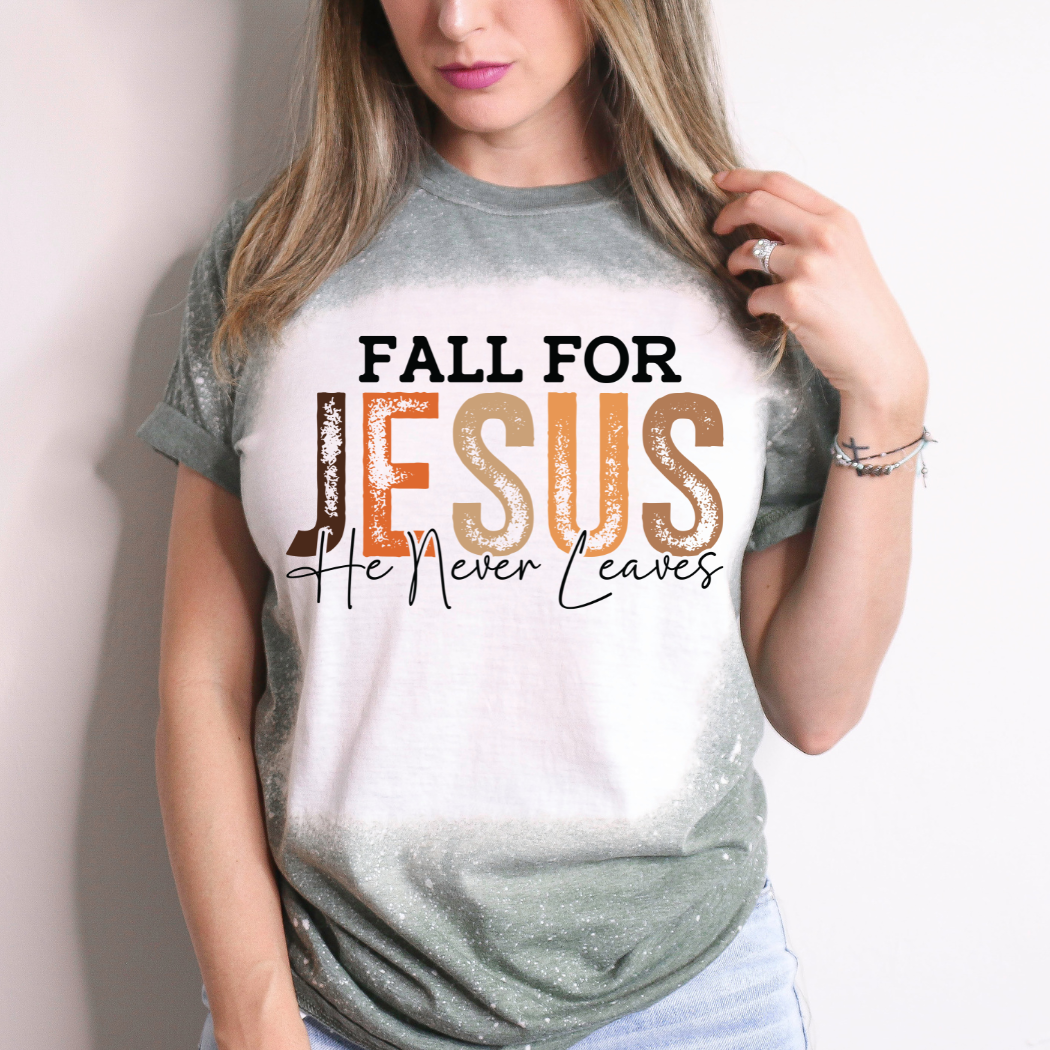 Details: * "Fall for Jesus, He never leaves" * Material: 52% Airlume combed and ring-spun cotton, 48% polyester * Features: Super soft and comfortable, tearaway label * Color: white / heather olive Sizing: * Runs true to size * Length and width measurements available here Seasons: * Fall