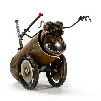 Add a historical and vintage touch to your home or office with this Antique-Style Cannon Sculpture. Expertly crafted from a combination of aluminum and plastic, this tabletop accent offers both durability and intricate detailing. The antique-inspired nickel and black finish enhance the realistic appearance, giving it a classic, museum-quality look. Its lifelike cannon design, including finely detailed wheels and barrel, creates a striking focal point for any desk, shelf, mantel, or display cabinet. Perfect for vintage, industrial, or history-themed interiors, this decorative piece also serves as a thoughtful gift for collectors, military enthusiasts, or design lovers. Its timeless charm makes it an ideal conversation starter while adding personality and character to your space. The sculpture measures 12 inches in length, 7 inches in width, and 5.75 inches in height. Crafted from a durable combination of aluminum and plastic for strength and detail. Antique-inspired nickel and black finish gives it a vintage, classic look. Realistic cannon design includes intricately detailed barrel and wheels. Functions as a decorative tabletop accent for desks, shelves, mantels, or cabinets. Complements vintage, industrial, and historical-themed interior décor. Lightweight yet sturdy, making it easy to move and display. Ideal as a thoughtful gift for history buffs, collectors, or enthusiasts of military décor. Adds a striking and unique element to your home or office décor. Perfect as a conversation starter and a statement piece in any room.