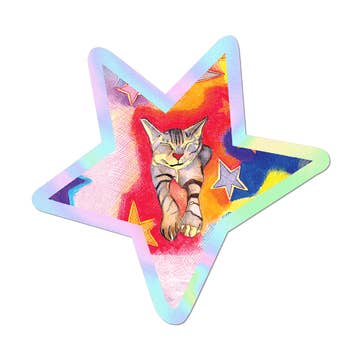 Galaxy Cat - Red - Holographic Cat Sticker