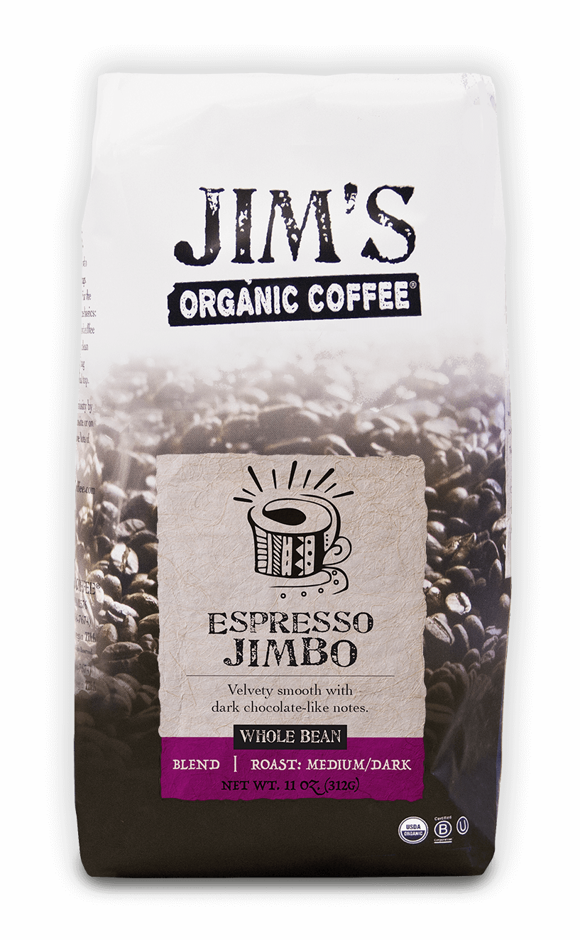 TASTING NOTES: Deeply rich and opulent with milk chocolate-like notes. - Whole Bean Coffee - Medium Roast Single Origin - 12 Oz Bag / 6 per Case - Certified Organic | Shade Grown | Fairly Traded Minimum Advertised Price - $14.99. Contact Jim’s for details. ROASTED TO PERFECTION - We roast and pack our coffee into one-way valve bags for roaster fresh taste. Made in the USA. THE BEST ORGANIC FARMS - We use the finest quality 100% Arabica coffee beans from all over the world. Over 25 years, we’ve established long-lasting relationships with growers, ensuring we get only their best coffee, year after year. ORGANIC COFFEE WITH A MISSION – Our mission is to bring you exceptional coffee – Coffee with Character – batch after batch, cup after cup. All of our coffee is USDA Certified Organic and Kosher. Jim’s Organic Coffee is a B-Corp – harnessing the power of business as a force to do good, we give back to coffee communities through charity partnerships.