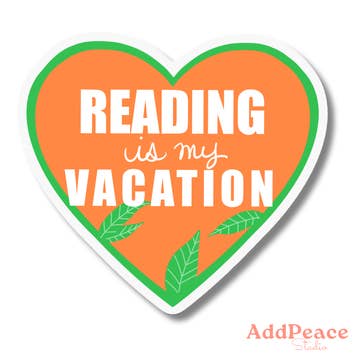 A colorful waterproof vinyl sticker for readers, introverts, and Emily Henry fans. Perfect for laptops, journals, and water bottles, this design declares “Reading Is My Vacation,” a playful nod to book lovers who escape into stories. Details: Size: 2.5" Material: Waterproof, scratch-resistant matte vinyl Packaging: Plastic-free cello sleeve for shipping; stickers arrive loose for easy display Made in USA, original artwork by AddPeace Studio Perfect for: Indie bookstores, libraries, and stationery shops Romance readers, Emily Henry fans, and book club members Fun impulse gifts, stocking stuffers, or journal spreads Why Retailers Love It: Trendy and relatable, this design connects with Emily Henry fans while resonating with all readers who see books as their getaway. A fun impulse buy that pairs well with other romance-inspired designs from AddPeace Studio.