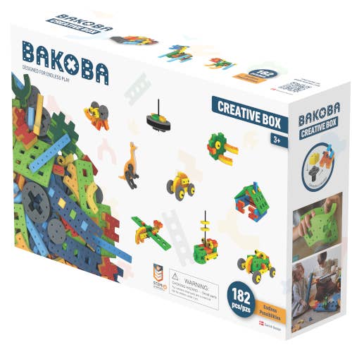 Develop your building skills with this box of BAKOBA. Build a big car with fast-spinning wheels, a helicopter, cute animals and much more. Instruction manuals are included in the box and find many more online. BAKOBA is perfect for water-play so bring your constructions to the bathtub and build a big ship. All parts are waterproof and can be washed in the washing machine. Eyes are included, which will bring your constructions to life, plus the unique “Connector”, which makes it possible to combine BAKOBA with other well-known building bricks. Cleaning: All BAKOBA parts can be washed in the washing machine. BAKOBA is STEM-certified as an educational toy that enhances children’s motor skills and creativity. In addition to this, BAKOBA has won a Reddot design-award for the toy’s innovative design. Recommended from 3+ years.