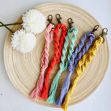 You're looking at my all time best selling product. Offered in a large variety of colors, these macrame wristlet keychains are an essential product! Your customers are sure to pick one of these wristlets up in their favorite color before checking out.
