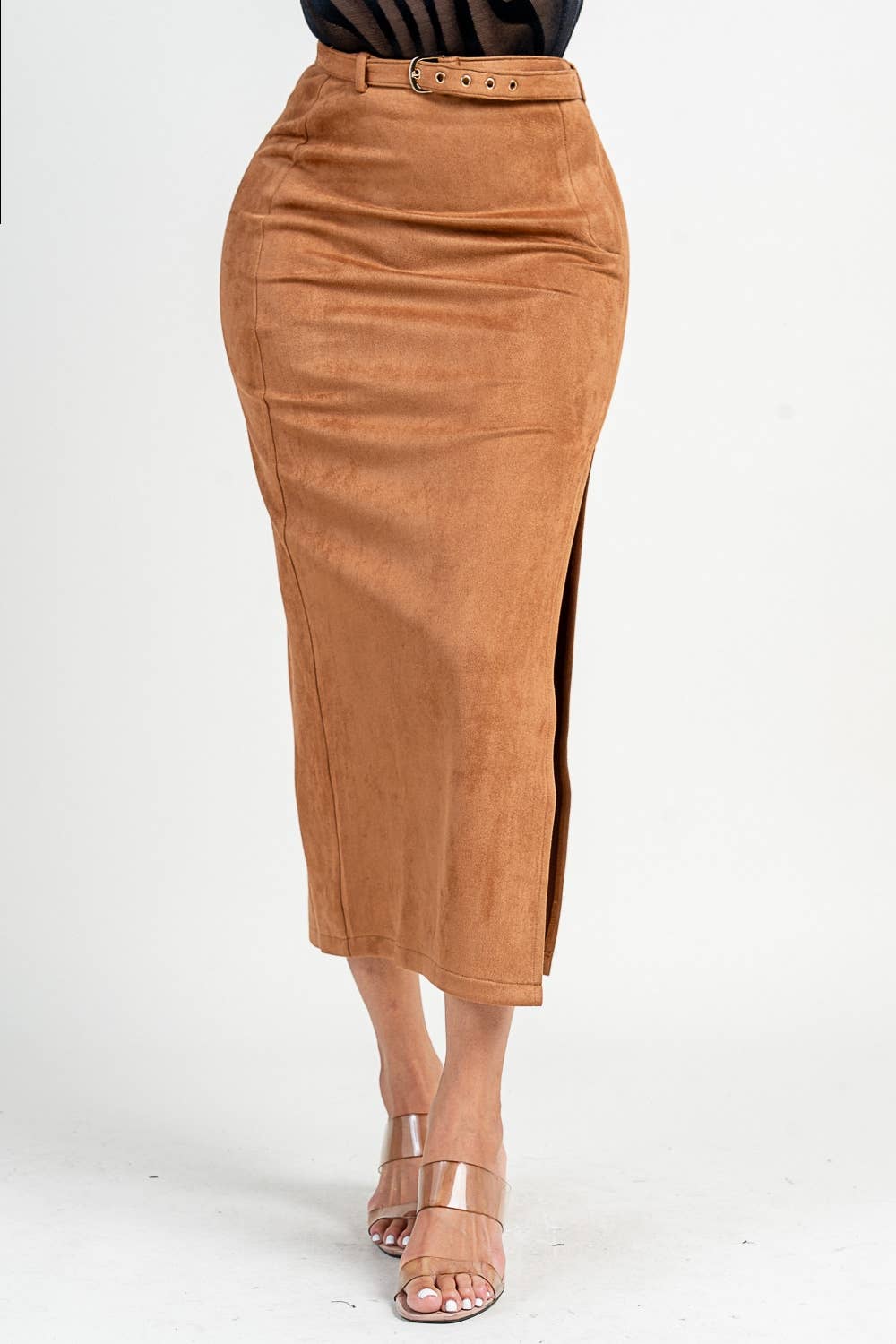 PLUS SIZE SIDE SLIT PENCIL SKIRT