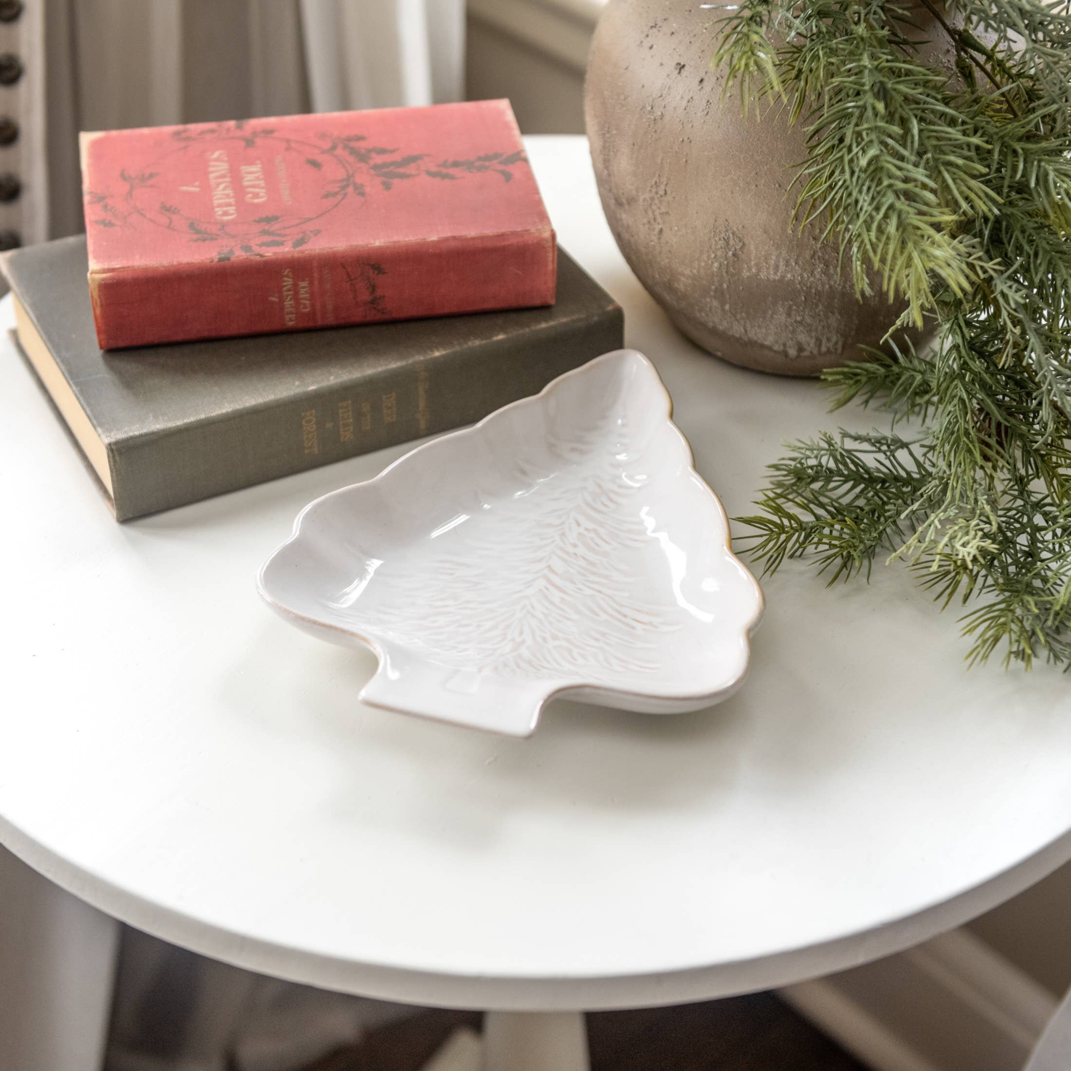 Noelle Tree Rectangle Platter White/Green/Red 12x6.5