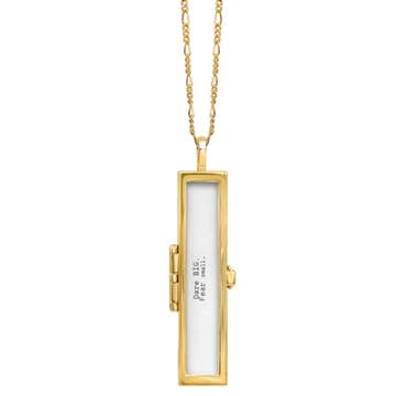 The Affirmation Locket. Write down your daily words of encouragement, fold it up inside the envelope, and wear close to your heart! Choice between Gold plated or Silver plated envelope charm on an 18" chain. Option of customizable display card with your store name, logo, city, event, etc. printed on it.