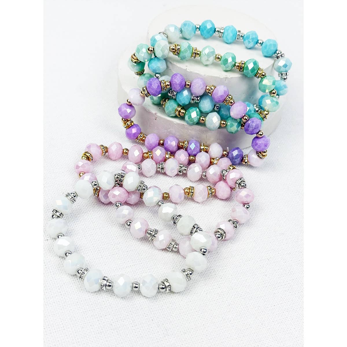 - These 12-Pack Pastel Color Double Beads Stretch Bracelets are the perfect versatile accessory to add a pop of color to any outfit. - These bracelets feature a unique blend of pastel colors and double bead design, ensuring a stylish and contemporary look. - Whether you're dressing up for a formal event or looking to add some flair to your everyday wardrobe, these stretch bracelets are a must-have accessory.