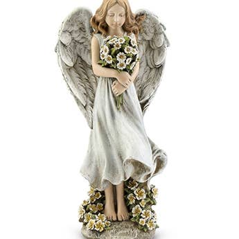 Standing at 7.5 inches tall, the Deer Angel Figurine is crafted from durable resin, ensuring it remains a beautiful addition to your home decor for years to come. Each element is hand-painted, from the earthy tones of her dress to the subtle shading on her wings. Soft felt feet at the base prevent any scratching on surfaces, making this figurine a versatile piece that can be displayed in a variety of settings. This figurine is a beautiful tribute to the companionship and gentleness symbolized by the deer resting at the angel’s side. The angel’s wings feature a textured, natural design, blending harmoniously with her gown, which has been adorned with subtle floral accents to evoke the serenity of a forest. Her peaceful expression and gentle interaction with the deer create a calming, nurturing presence, perfect for any nature-inspired decor. To maintain its delicate beauty, dust with a dry cloth as needed. Packaged securely in a white die-cut box, it’s ready for gift-giving.