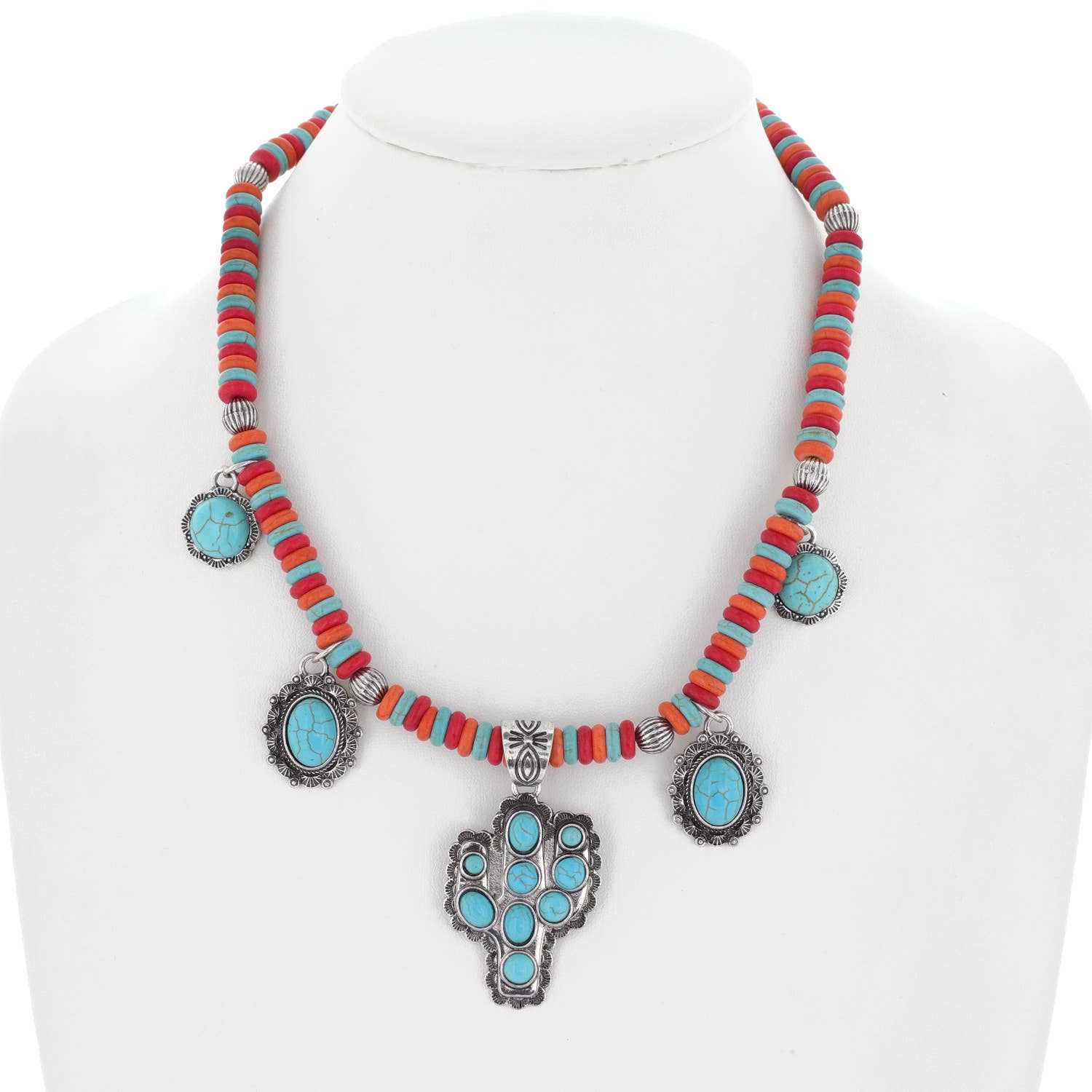 Elegant, striking and colorful, this necklace features the elements we most love about Tibetan jewelry. It has delicate strands of coral and intricate cone beads, all anchored with a lovely Tibetan-style brass pendant with coral and turquoise stones. Materials: Brass beads and pendant with coral and turquoise inlay; turquoise and coral beads. Length: 20 inches/50 cm Handmade in Nepal: may contain slight variations