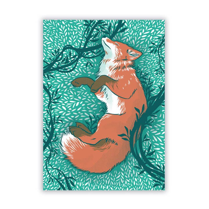 18 inch x 24 inch four color screen print on 100lb cardstock. Signed by the artist. Arrives individually packaged with cardboard backing, sealed in a protective sleeve.