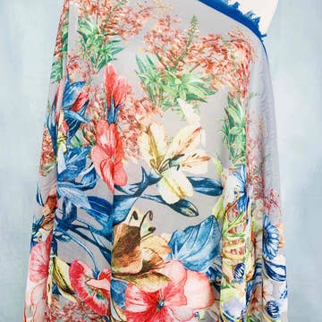 Looking to make your everyday beautifully ornate? Look no further! This is where luxury meets vibrancy. Radiant tones, tropical birds and florals dance together to create a wonderfully unique cotton scarf and fabulous addition to every capsule wardrobe. 53x182cm. 100% Cotton. Cool hand wash only. Do not leave garment in suds. Do not bleach. Tumble dry, low. Do not iron. Do not dry clean.