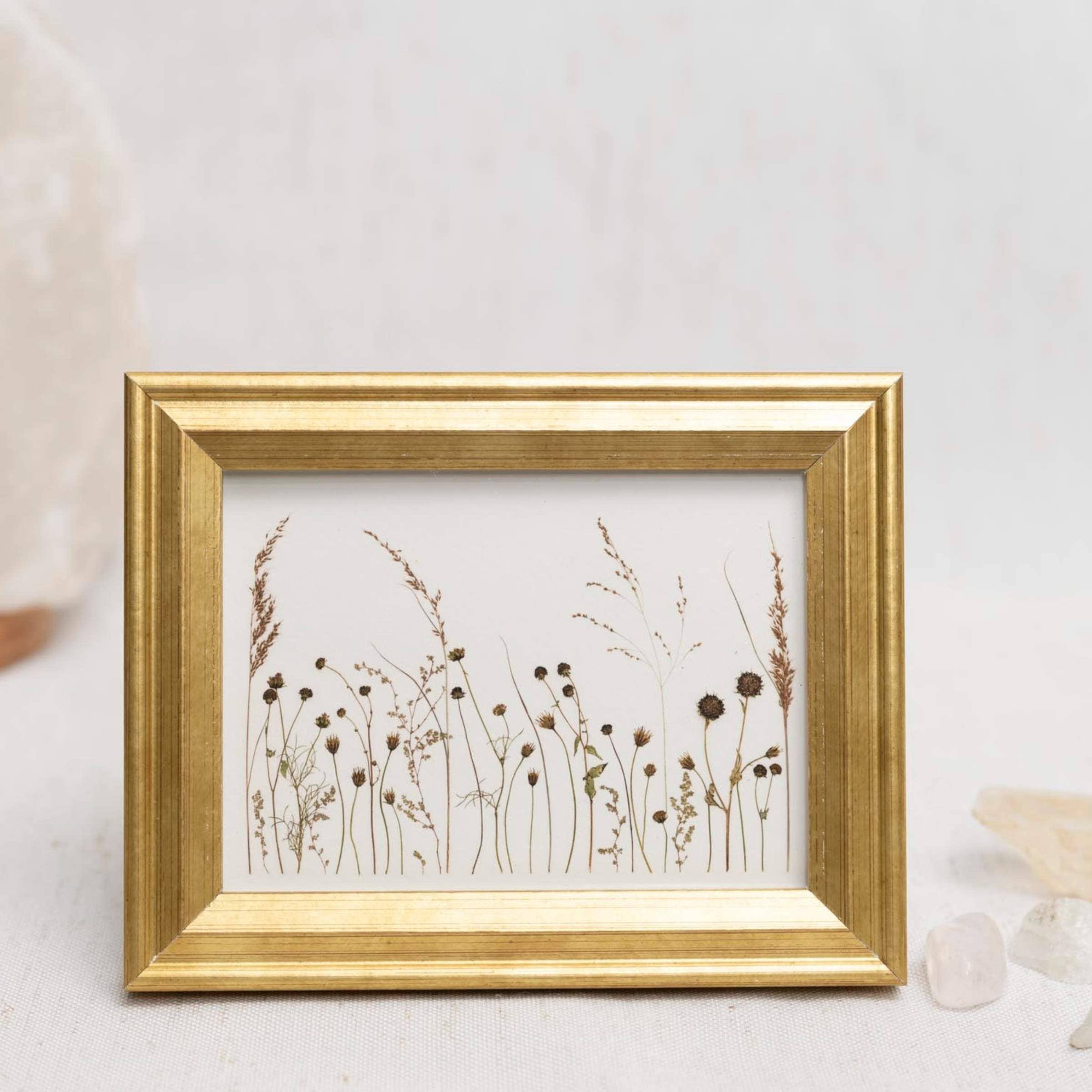 Mini Framed Pressed Flower Art Print - Golden Whisper