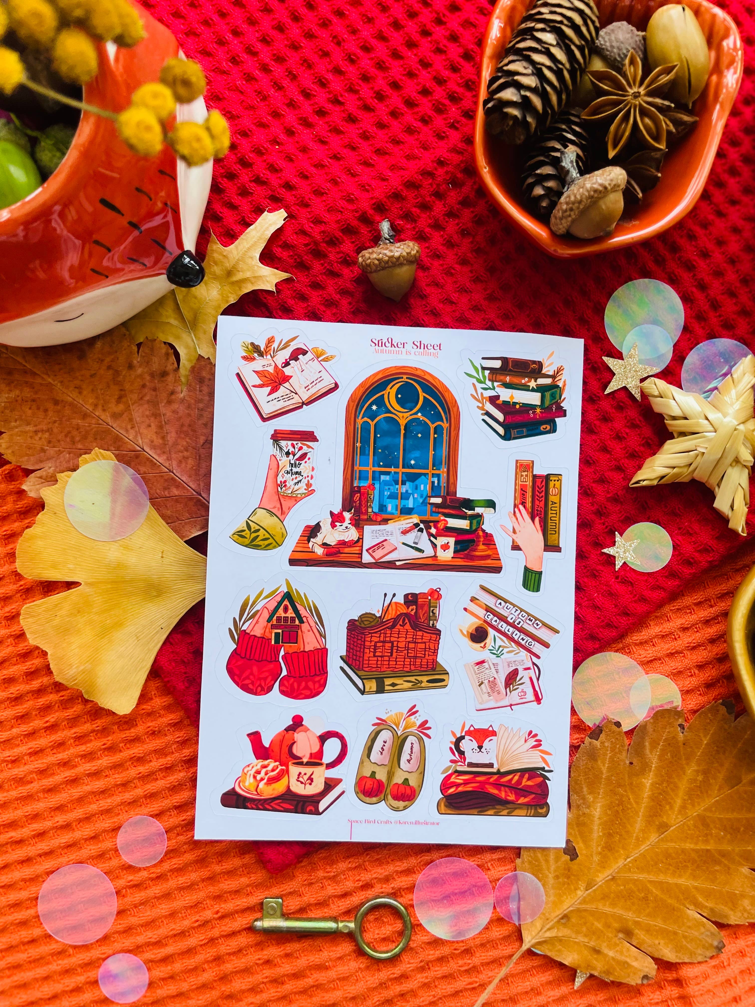 Decorative stickers to decorate your Bullet Journals, Planners, and Scrapbooks. The sheet contains a total of 11 stickers. ---------------------------------------------- S I Z E S & M A T E R I A L S Sheet Size: 168 x 118 mm (6.6 x 4.8 inch) All of my stickers are printed on matte white sticker paper and kiss cut with the Cricut Explore Air 2 machine. --------------------------------------------- N O T E S All our products are entirely handmade - from illustrating to producing and shipping. **The colors may vary depending on your screen settings.** **Our stickers are not waterproof!** Send a message if you have any questions. We love to help. Im ausgewiesenen Rechnungsbetrag ist gemäß § 19 UStG keine Umsatzsteuer enthalten. © Space Bird Crafts. All rights reserved. Aka Karen Tuba