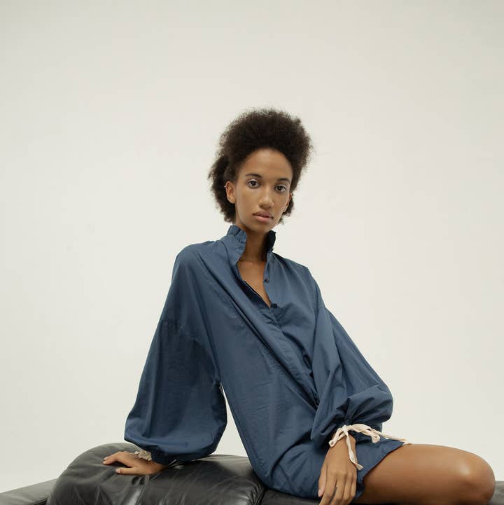 The rise and shine 3 tie kaftan dress is cut for a flowy, loose silhouette, which falls beautifully, with oversized long cuffed sleeves.  A vintage 70's silhouette, featuring  A flattering tailored v-neckline that hangs open. In our paisley naga print, this is a dress you can wear with sneakers, heels or barefoot you can also style it with or without stockings, it can carry you through from winter to summer. Style with your favourite sunglasses or a statement accessory for an extra edge. Designed for a relaxed fit Long oversized sleeves with cuff Tailored v-neck line Double tiered Paisley naga print Viscose fabric Mini length Model is 5'8 wearing australian size 8 Refer to size chart for your size Hand wash in eco friend detergent    Care instruction Machine washable (preferable hand wash) Cold water wash Mild detergent Do not bleach Low heat iron Drip dry in shade