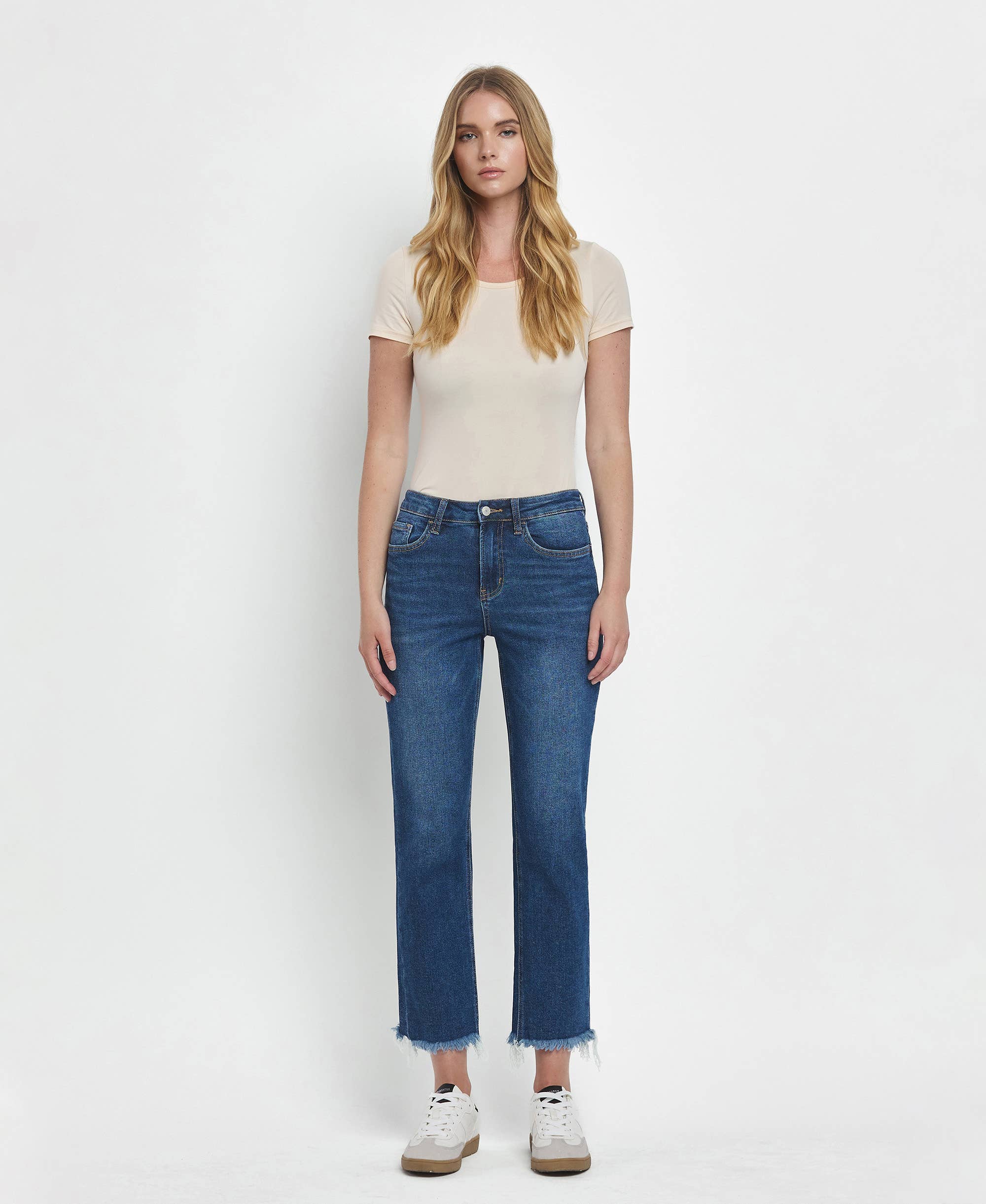 PLUS MID RISE CROP STRAIGHT JEANS-KC7478D-P