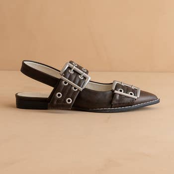 POINTED TOE, OPEN BACK ANKLE STRAP FLATS -Step into refined elegance with WISE-06, a pointed-toe slingback flat designed for effortless sophistication. Featuring a sleek silhouette and delicate strap detail, this style offers the perfect balance of polish and comfort for every occasion. - Casual - Colors: Black PU, and Brown PU - Size: 18 pairs 18A: 5.5(1)-6(2)-6.5(2)-7(3)-7.5(3)-8(3)-8.5(2)-9(1)-10(1) 18B: 6(1)-6.5(1)-7(2)-7.5(3)-8(3)-8.5(3)-9(3)-10(2) - Unless indicated otherwise in the comment section. If the size pack you ordered is not available, we will ship the next size run available.