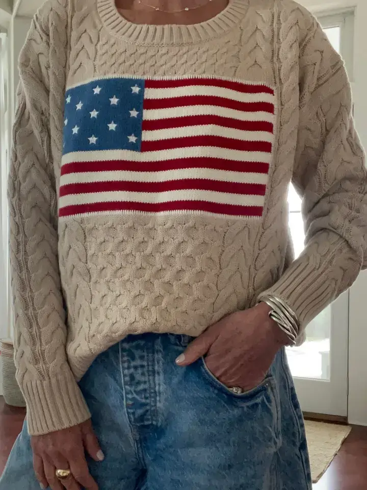 LUXE American Flag Sweater 100% Cashmere