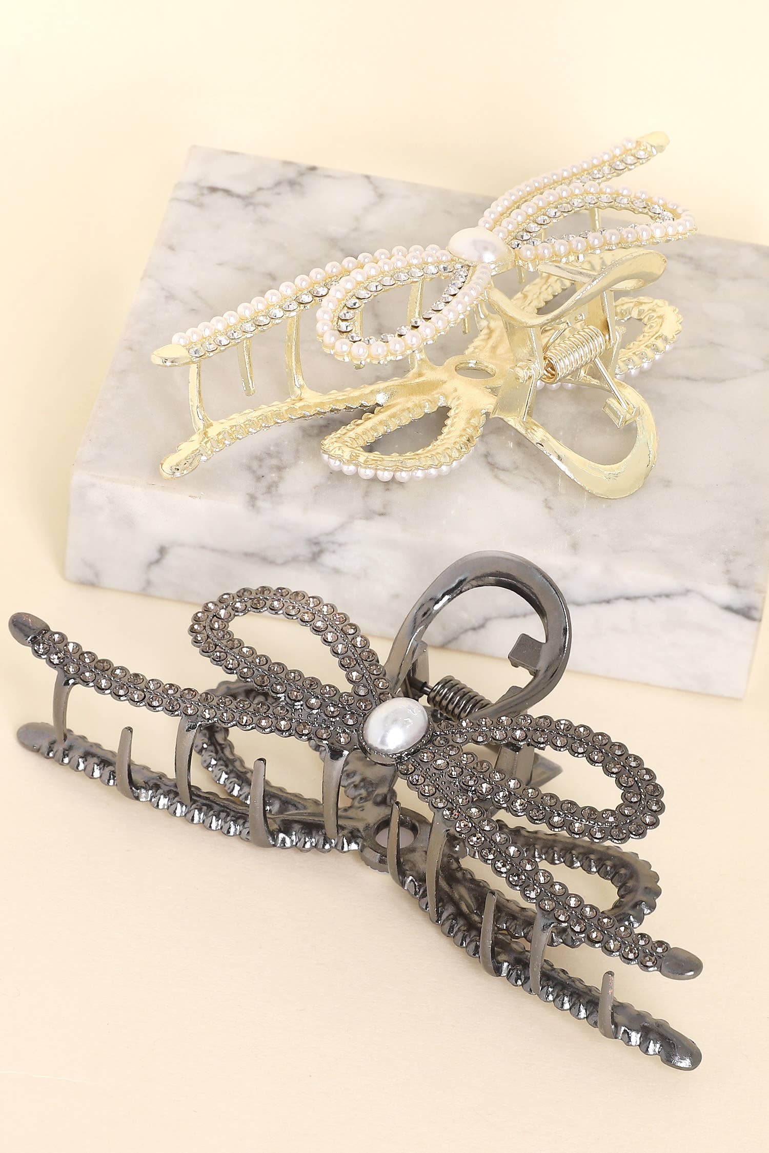 Metal Rhinestone Loop Claw Clip 1pc- Gold