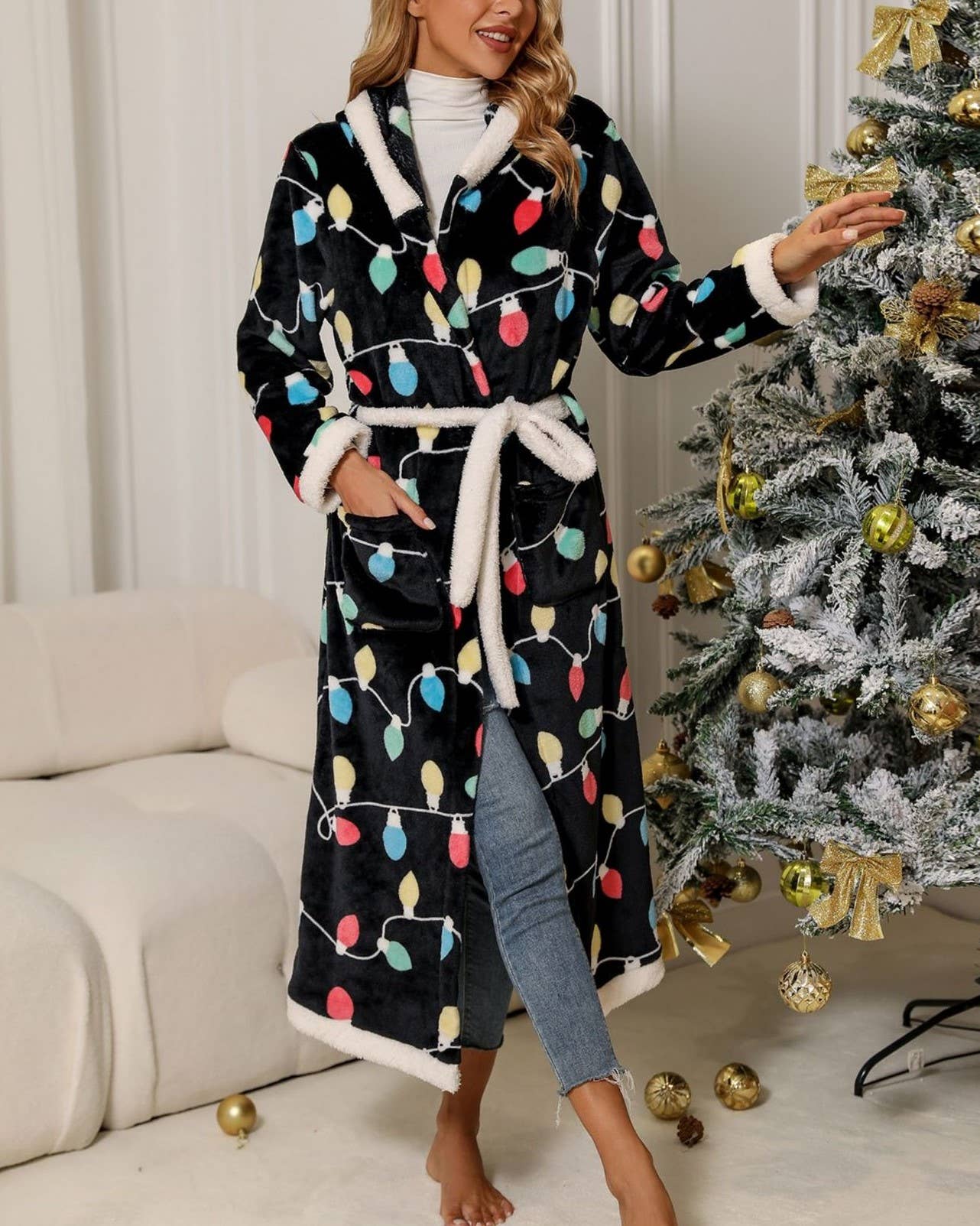 Wholesale Christmas 2025 Pajamas - Fur Trimmed Robe - Tartan
