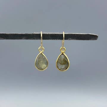 These are great little drops of color to add to any wardrobe. Earrings measure 1.25" from top to bottom. Choose from moss aquamarine, gray moonstone and amazonite. Metal choices are sterling silver, 14k gold fill, and rose gold fill. Earrings measure just over 1.25". Perfect pop of color. Lightweight. Great price.